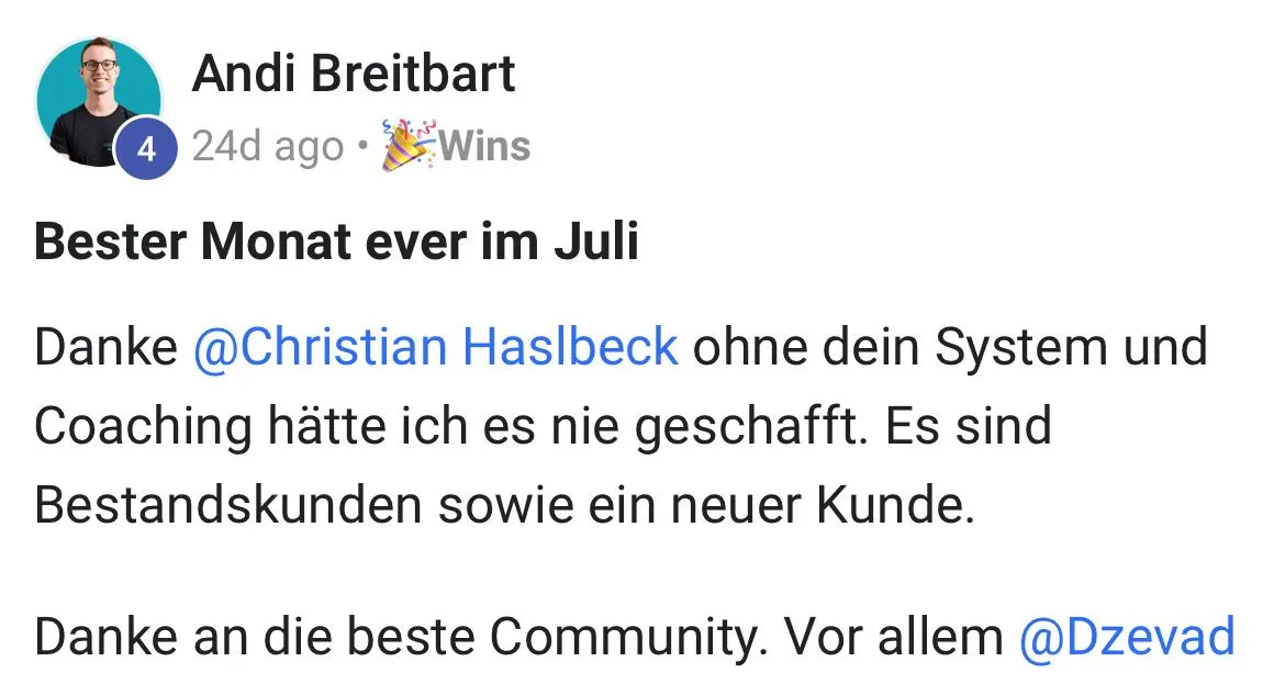 Christian hat in seinem eigenen Mikrostudio hunderttausende Euro Umsatz mit dem 6 Wochen Challenge Angebot erzielt und kennt daher den Ablauf von A-Z ganz genau.